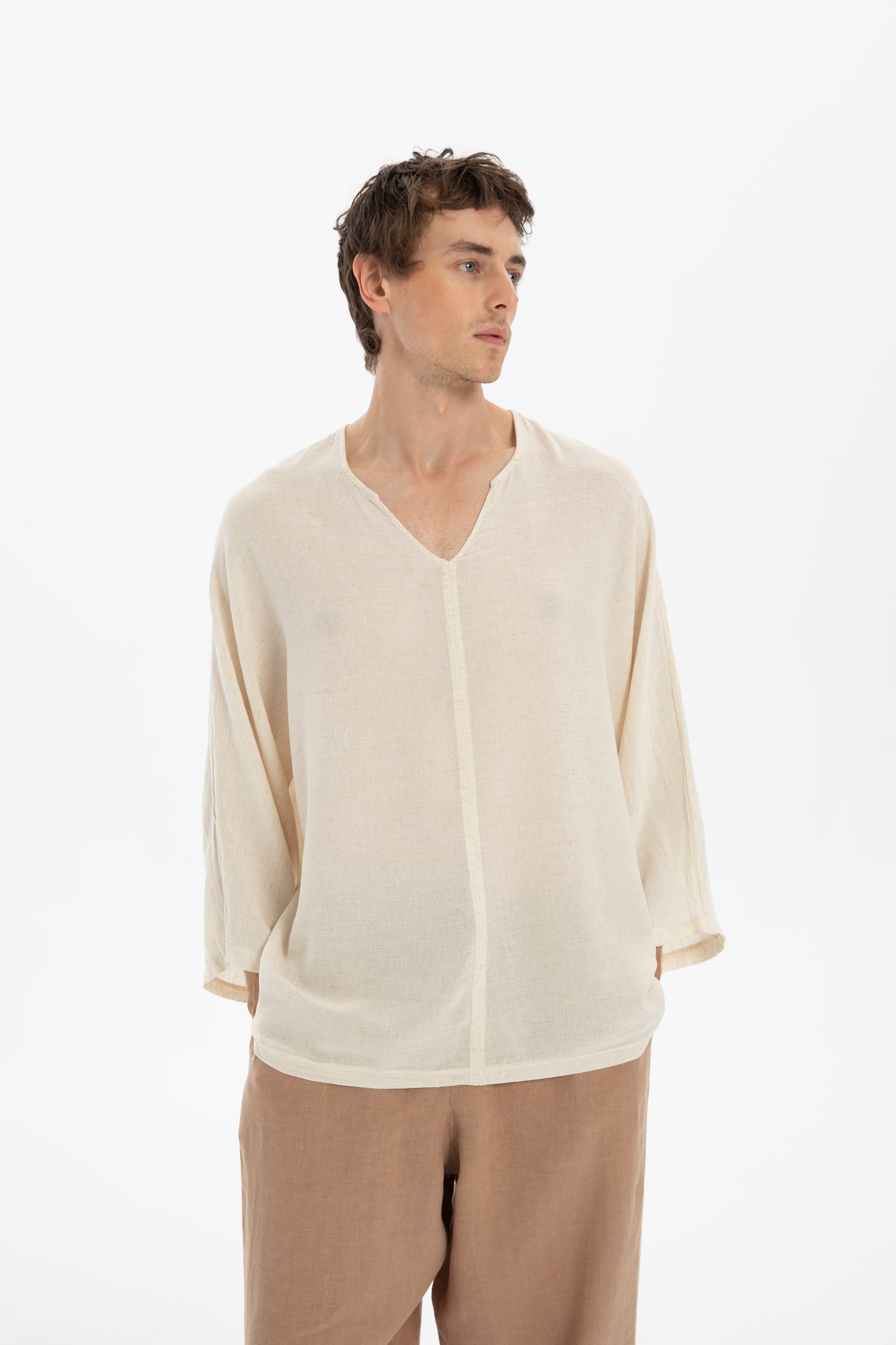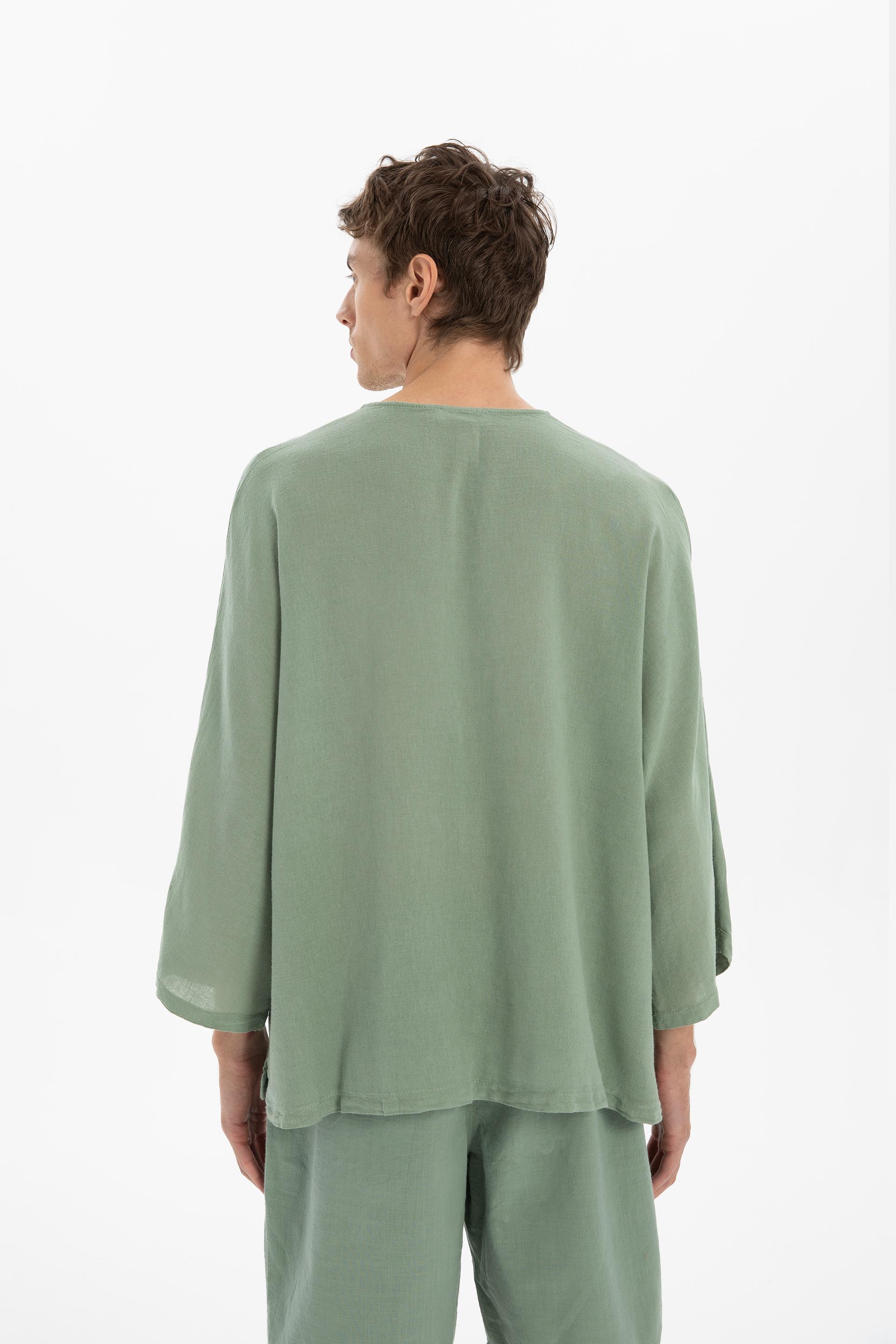 Keten Karışımlı Yarasa Kesim Erkek Tişört